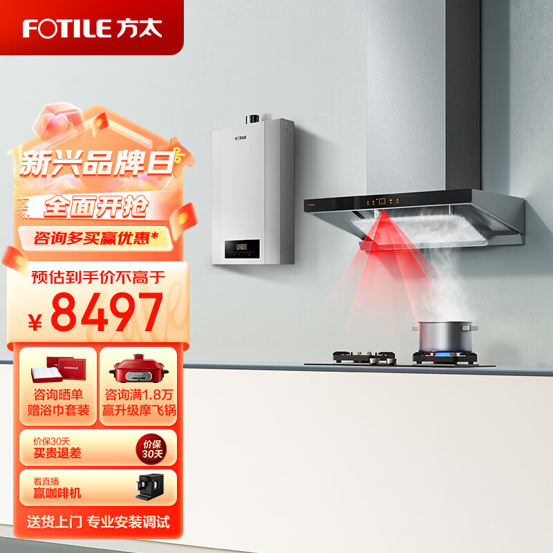 方太欧式烟灶热三件套 25风量抽油烟机 5.2kW燃气灶 16升家用恒温热水器EMQ3T+02-TH27B+P16D1价格:8497.00元!