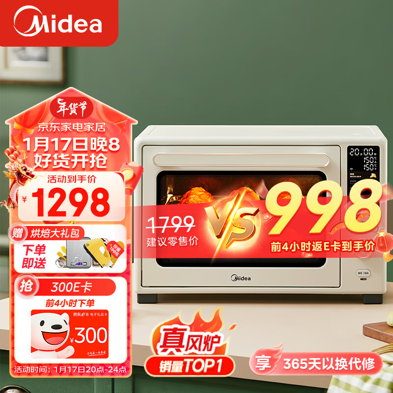 美的(Midea)40L风炉烤箱/家用多功能/初见P40石墨烯免预热电烤箱 双层同烤/彩屏屏显/智能操控/PID3.0精准控温价格:1298.00元!