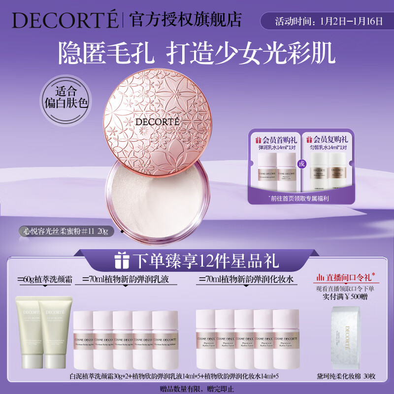 黛珂心悦容光丝柔蜜粉20g11#象牙白(偏白肤色)散粉定妆新年礼物女友价格:380.00元!