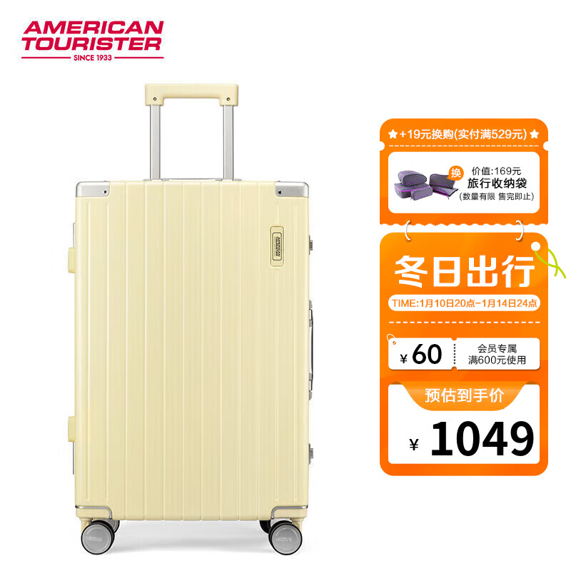 美旅箱包拉杆箱高颜值铝框行李箱28英寸时尚复古旅行箱TI1黄色价格:1319.00元!