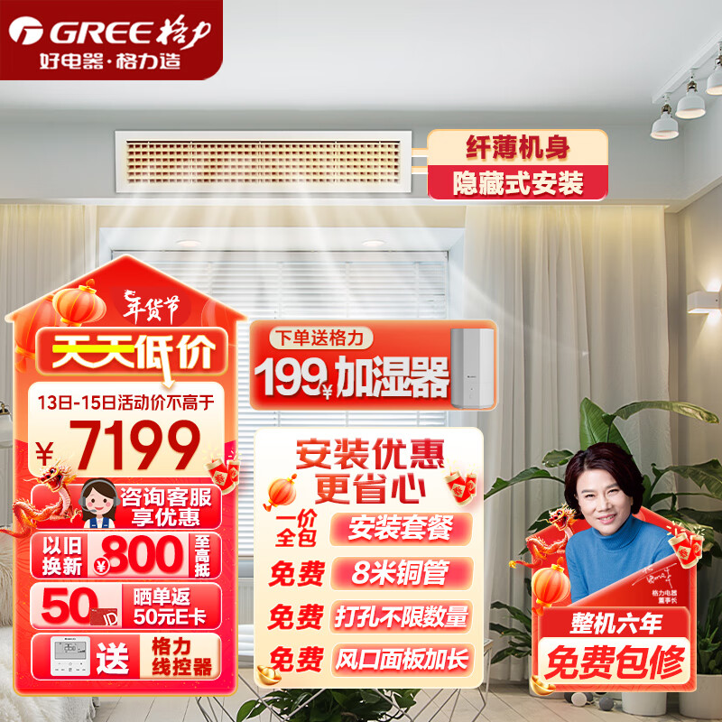 格力(GREE)中央空调 风管机一拖一 2匹家用嵌入式空调 直流变频FGR5Pd/C3Nh-N2 京仓派送(一价全包)价格:7199.00元!
