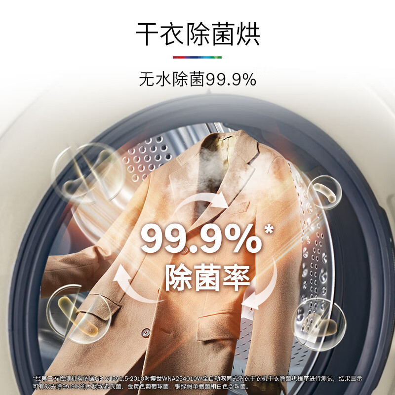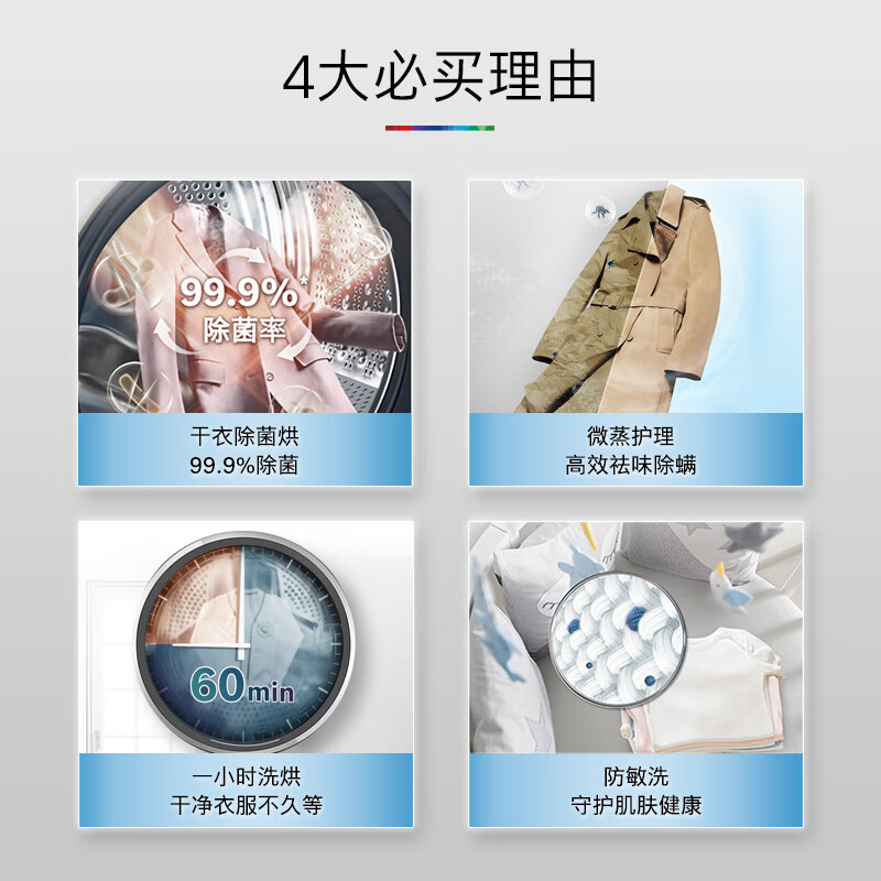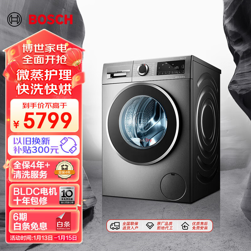 博世(BOSCH)【灰阶·除菌快烘】10公斤全自动家用大容量滚筒 洗衣机洗烘一体机微蒸护理智控速烘WNA254010W价格:5799.00元!