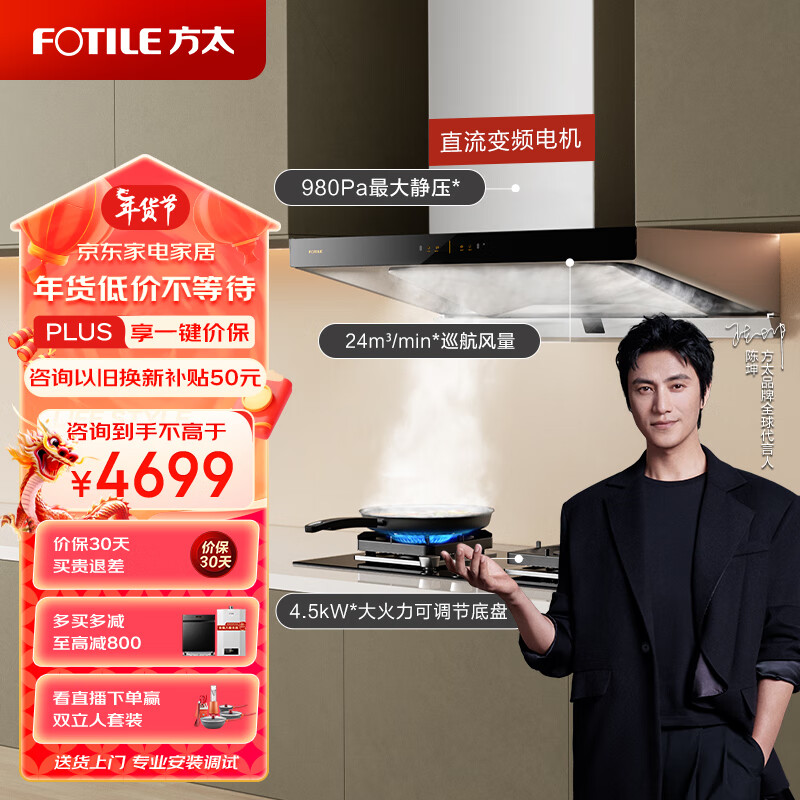 方太抽吸油烟机灶具套装 欧式顶吸排烟机燃气灶套餐 24巡航风量直流 家用烟灶套装EMQ6T+TH27B液化气价格:4699.00元!