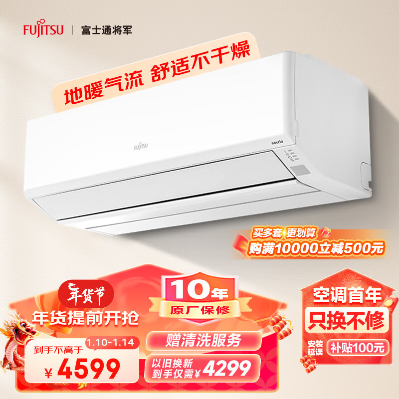富士通 15-21㎡适用 新2级能效 1.5匹 诺可力T空调 以旧换新 变频空调 ASQG12KTCA (KFR-35GW/Bpkta)价格:4599.00元!