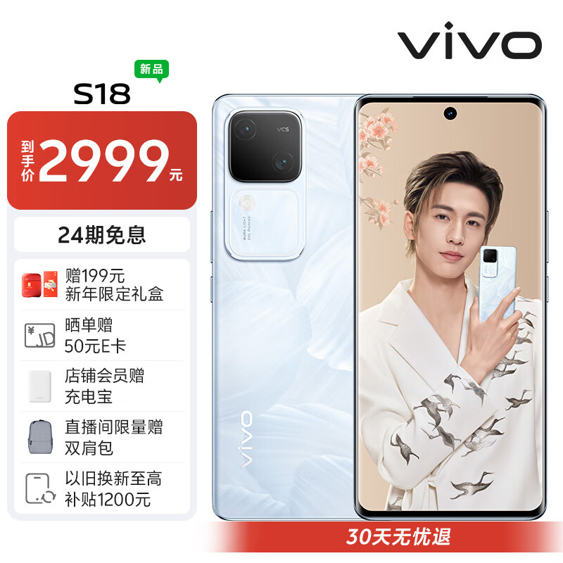 vivo S18 16GB+512GB 花似锦 后置影棚级柔光环 5000mAh超薄蓝海电池 第三代骁龙7 5G 快充 拍照 手机价格:2999.00元!