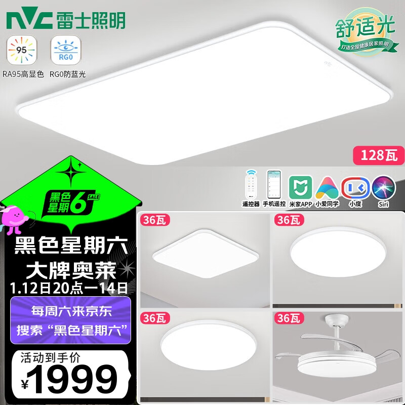 雷士(NVC)LED吸顶灯 现代简约客厅卧室餐厅小白灯具舒适光防蓝光灯饰白雪H价格:2498.00元!