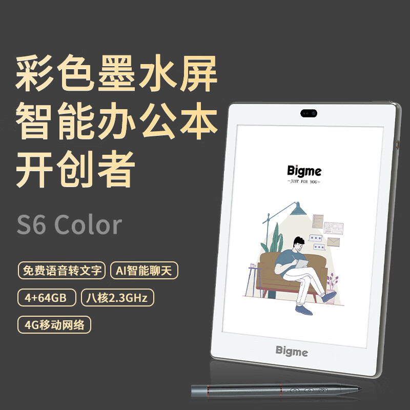 BIGME 大我 S6Color+ 彩色墨水屏智能办公本7.8英寸电纸书手写本电子书阅读器彩屏笔记本双摄像头价格:3399.00元!