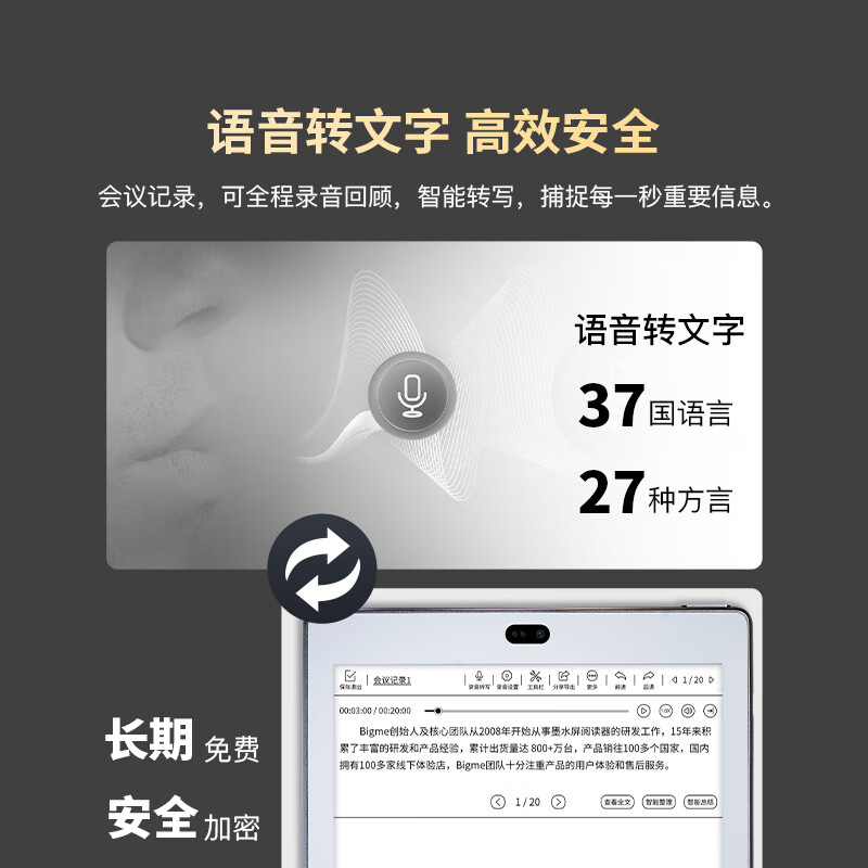 2、心心念念的BigmeS6(墨水屏)昨晚下单,今天收到,神速!7.8英寸的小本小巧精致携带方便,高清墨水屏悦目不伤眼,独立的触控笔轻巧且手感好,手写体验柔顺细滑,系统运行流畅,录音转文字在普通话模式下还不错,配套的蓝牙连接键盘也很方便。总体来说,非常满意???