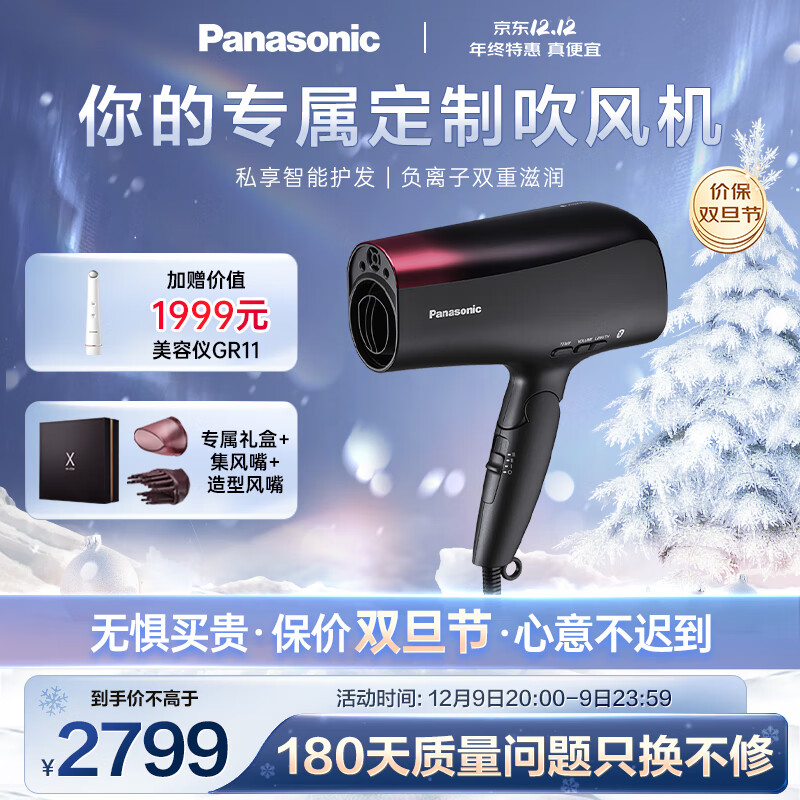 松下(Panasonic)电吹风机大功率高速大风力速干送老婆女友折叠便携纳诺怡负离子吹发护发电吹风筒XD30盒款价格:2799.00元!