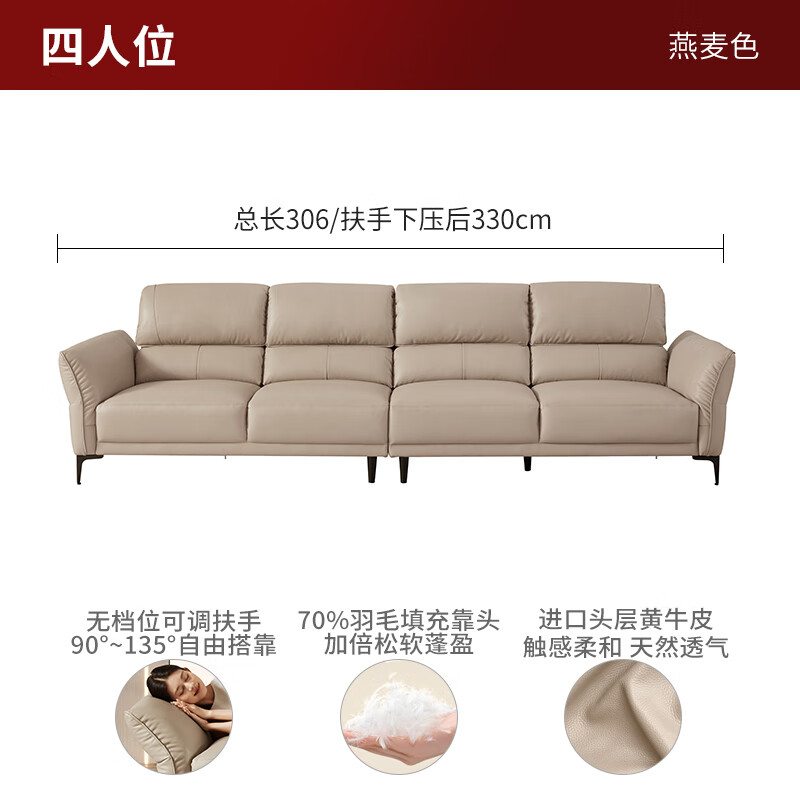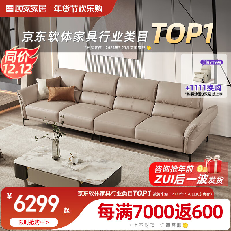 顾家家居(KUKA)头层牛皮沙发客厅翻折扶手羽毛靠头1202【燕麦色】四人位价格:6299.00元!