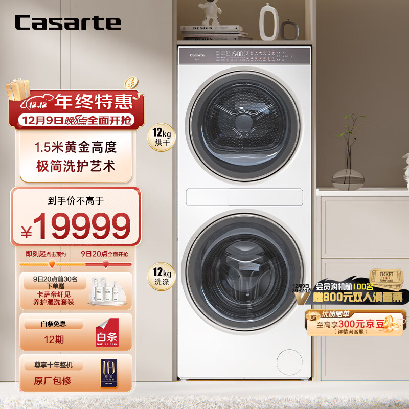 卡萨帝(Casarte)光年中子F2和美洗干集成机 12+12公斤 3D透视烘干双擎热泵 1.5米平嵌养护湿洗 C9 YF12BL12W2EU1价格:19999.00元!
