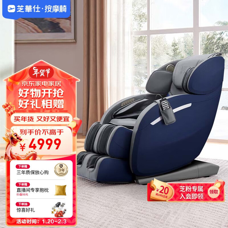 芝华仕(CHEERS)头等舱按摩椅家用电动多功能全身全自动按摩椅豪华太空舱送礼 MZ100A 深蓝色-现货发货价格:5262.00元!