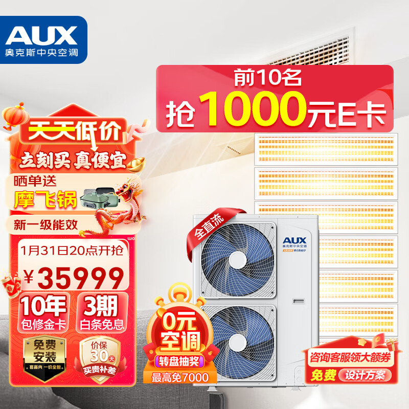 奥克斯(AUX)中央空调7匹一拖七家用多联风管机全直流一级变频包安装嵌入式空调适用六室一厅DLR-180W/DCJ2S-JM价格:34999.00元!