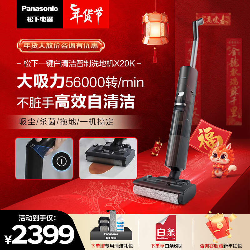 松下(Panasonic)洗地机无线智能 LED家用扫地机吸拖一体手持吸尘器MC-X20K价格:2399.00元!