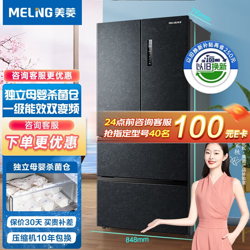 美菱(MeiLing)冰箱【光谱养鲜】541升对开门冰箱法式双开门大容量家用一级能效风冷无霜母婴变频节能电冰箱 寒武岩 BCD-541WPU9CY价格:3599.00元!