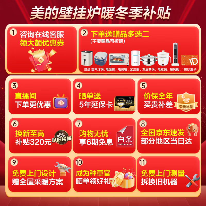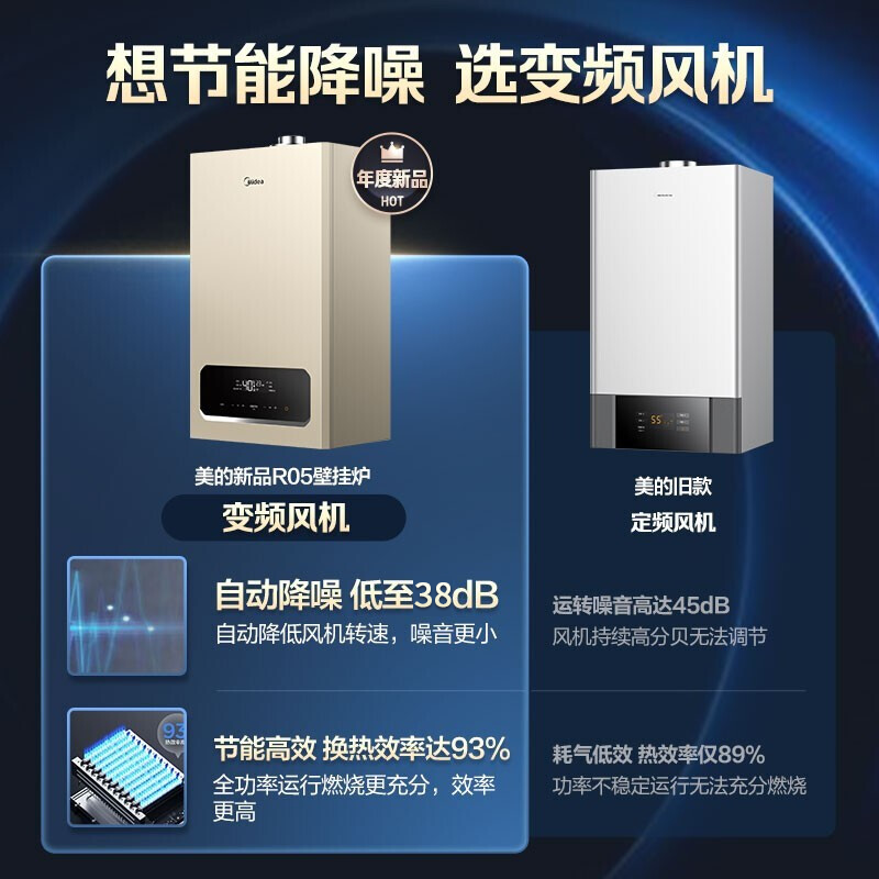美的(Midea)壁挂炉天然气采暖炉家用燃气锅炉热水器地暖暖气片洗浴两用恒温热水器电小体积 20KW -R05【双变频一级降噪】适用≤120㎡价格:5099.00元!