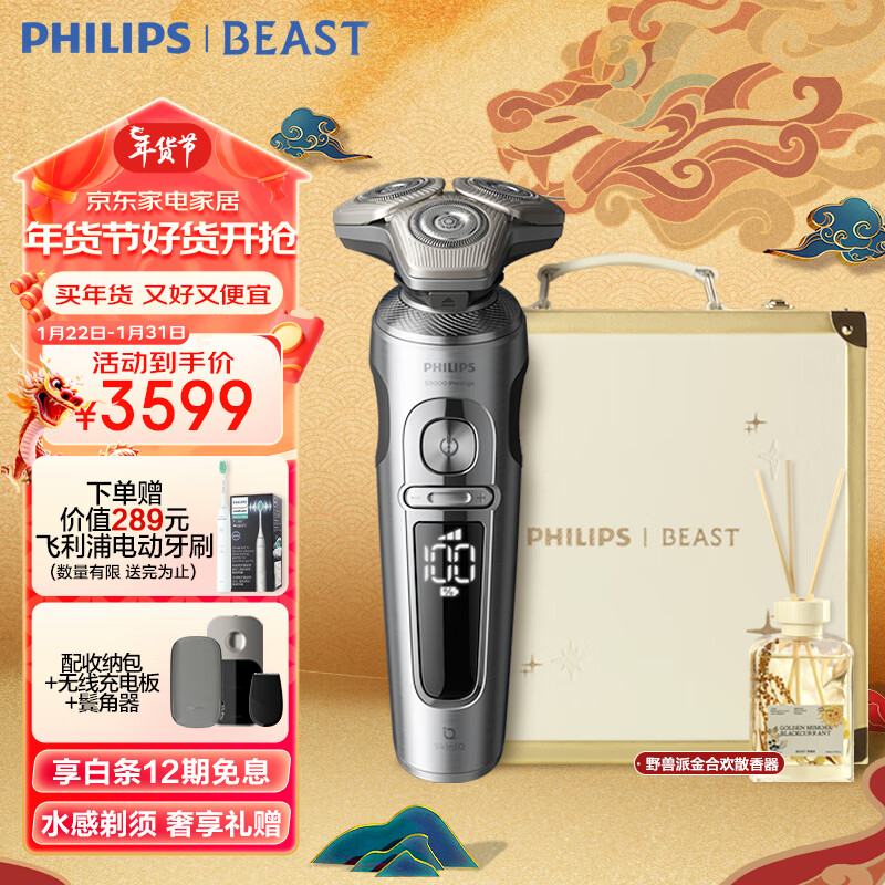 飞利浦(PHILIPS)电动剃须刀蜂巢奢享9系野兽派定制永耀礼盒 SkinIQ科技刮胡刀 新年礼物 送男友 送老公价格:3799.00元!