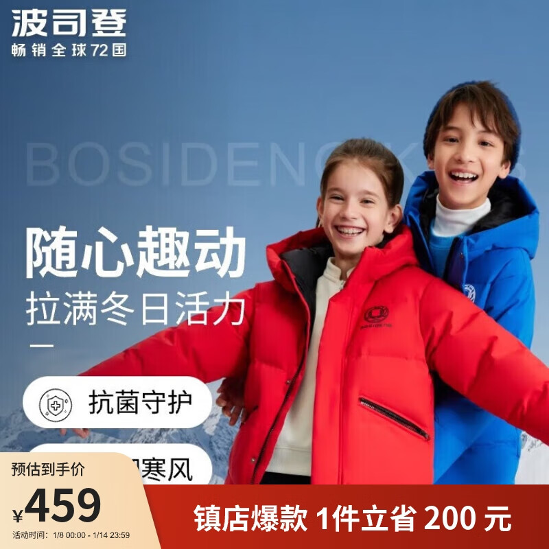 波司登冬季儿童羽绒服男童长款加厚连帽舒适时尚洋气保暖外套T00143403E价格:659.00元!