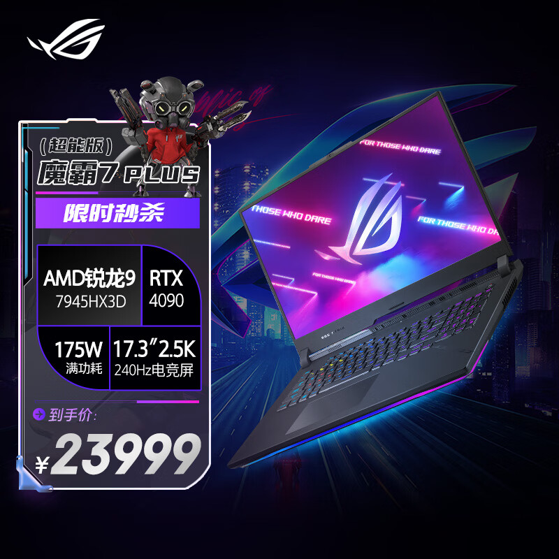 ROG魔霸7 Plus 超能版 17.3英寸 电竞游戏本笔记本电脑(R9 7945HX 3D 32G 1T RTX4090 2.5K 240Hz P3广色域)价格:23999.00元!