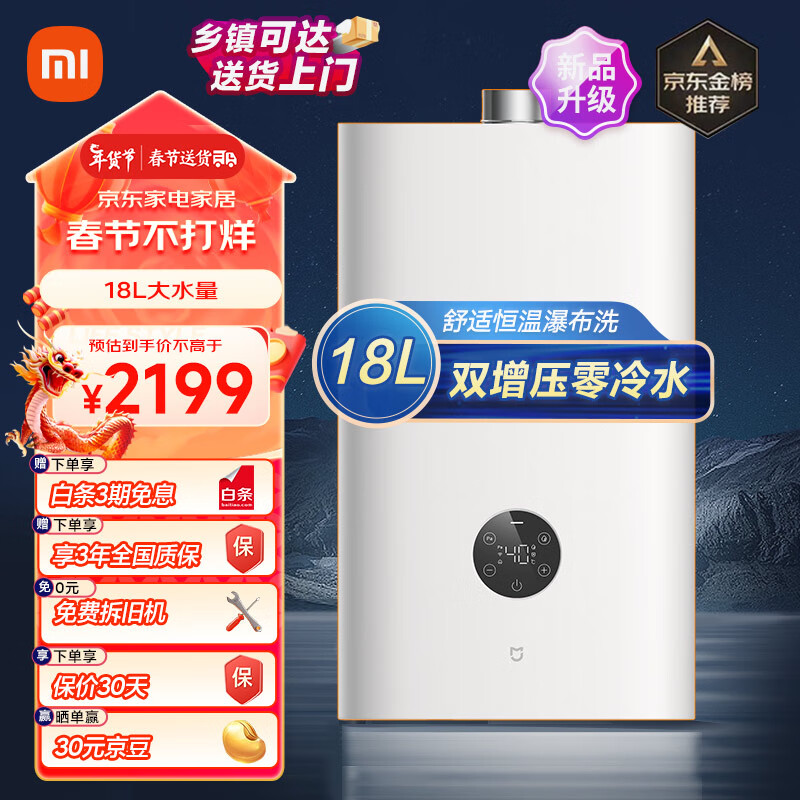 米家小米18L零冷水燃气热水器 天然气热水器 智能恒温节能省气 静音增压瀑布洗高楼层适用JSQ34-MJ01A价格:2199.00元!