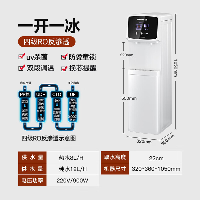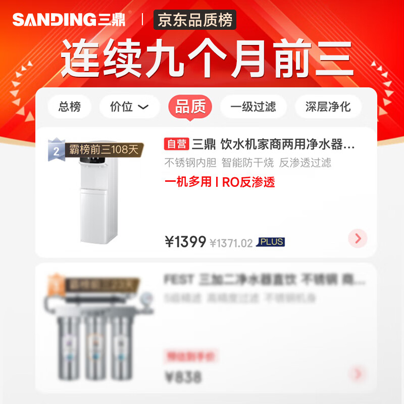 三鼎 饮水机家商两用净水器一体办公直饮机商用RO反渗透过滤立式净饮机烧开水器SDROG-209B价格:1599.00元!