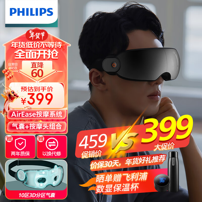 飞利浦(PHILIPS)眼部按摩仪 可视化护眼仪 3D气囊全包裹按摩器 缓解眼睛疲劳实用新年货送礼推荐7101E价格:459.00元!
