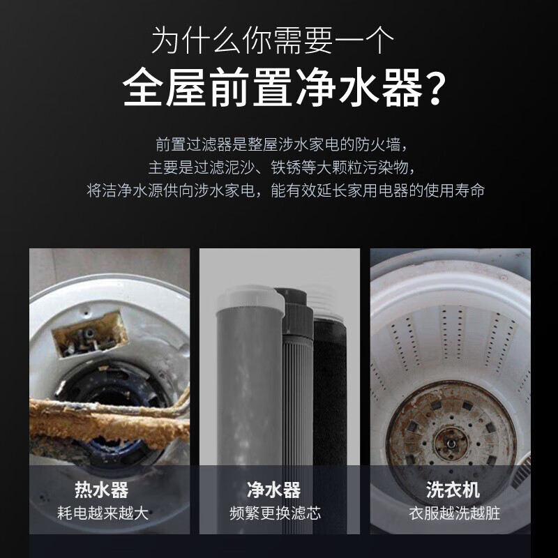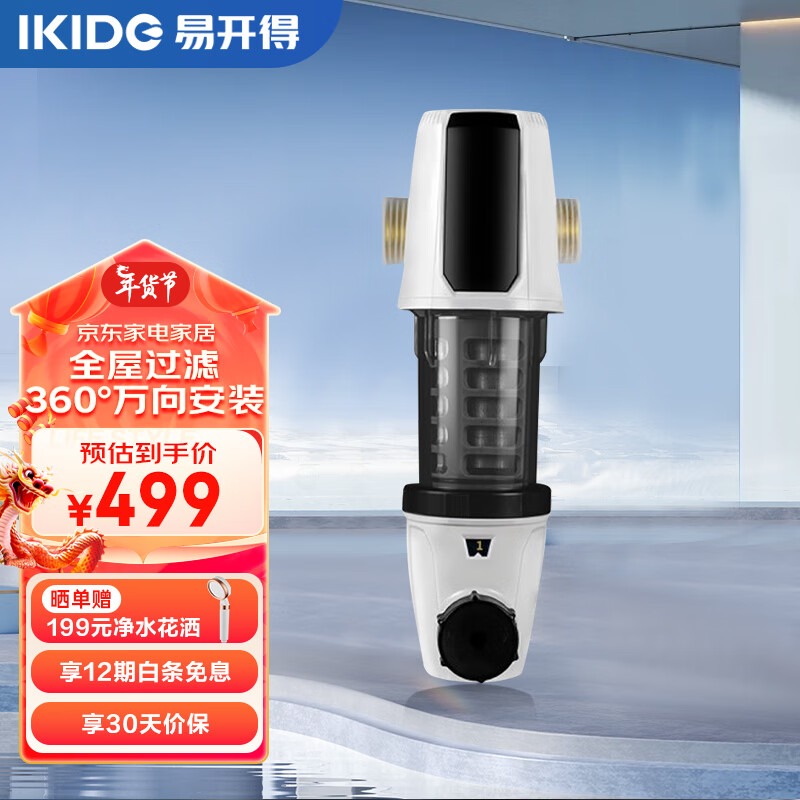 易开得前置过滤器全屋家用净水器 自来水大通量管道中央低废水360度过滤器(白)5002价格:499.00元!