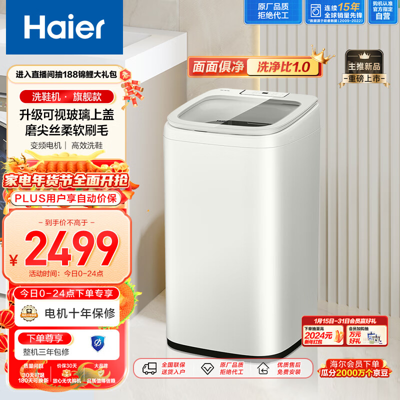 海尔(Haier)洗鞋机 刷鞋机 洗衣机小型 全自动5KG洗鞋神器洗脱一体电离除菌BB洗鞋机母婴呵护HQ1-TB278G燕羽灰价格:2499.00元!