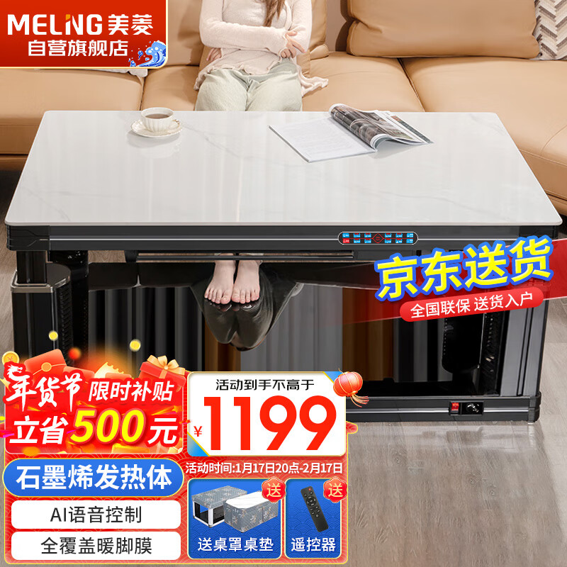 美菱电暖桌1.2米石墨烯发热取暖桌多功能升降烤火茶几语音控制电暖炉家用餐桌长方形烤火桌MDN-DA1310价格:1699.00元!