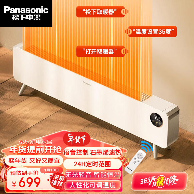 松下(Panasonic)石墨烯踢脚线取暖器家用语音声控电暖器轻音移动地暖居浴两用对流电暖气片速热烤火炉DS-A215BCW价格:1299.00元!