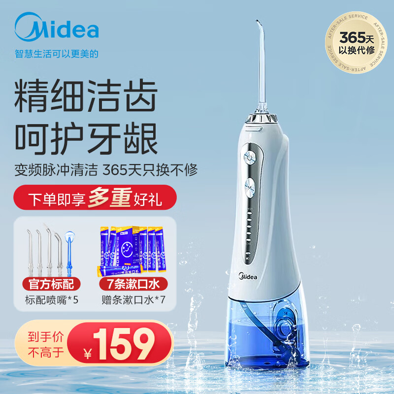 美的(Midea)冲牙器 洗牙器 水牙线 预防牙结石家用便携礼物 礼物 重力球专利MC-BJ0101小蓝鲸-银价格:159.00元!