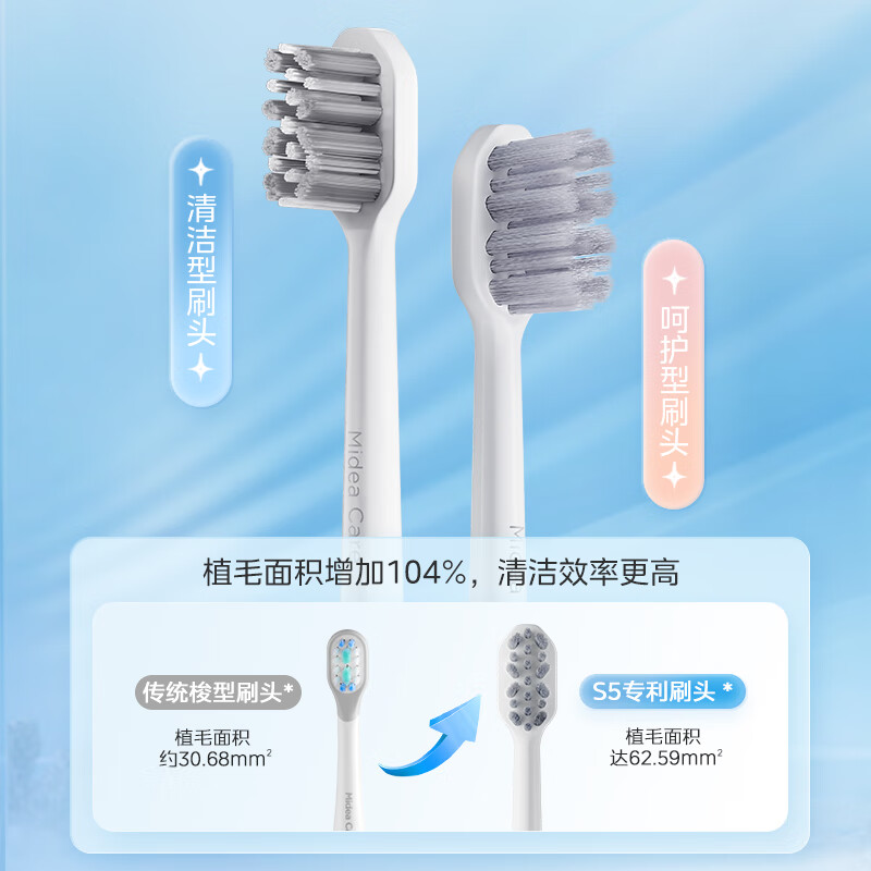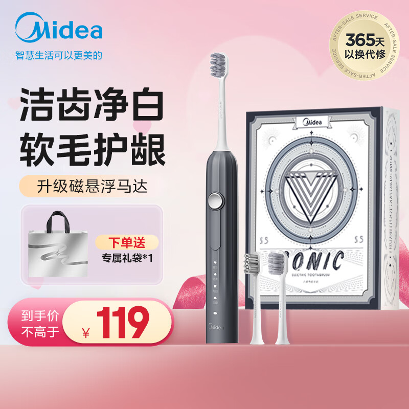 美的(Midea)电动牙刷成人 声波震动 220天长续航 智能换区提醒 软毛刷头*2 情侣款 礼物 S5 暮云灰价格:119.00元!