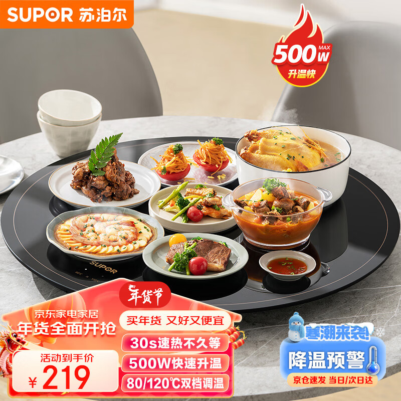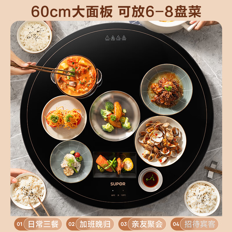 苏泊尔(SUPOR)暖菜板 饭菜保温板热菜板 加热桌垫菜板 烘干发酵解冻多功能加热板(圆形60CM)可旋转 BZ60A806J价格:218.00元!
