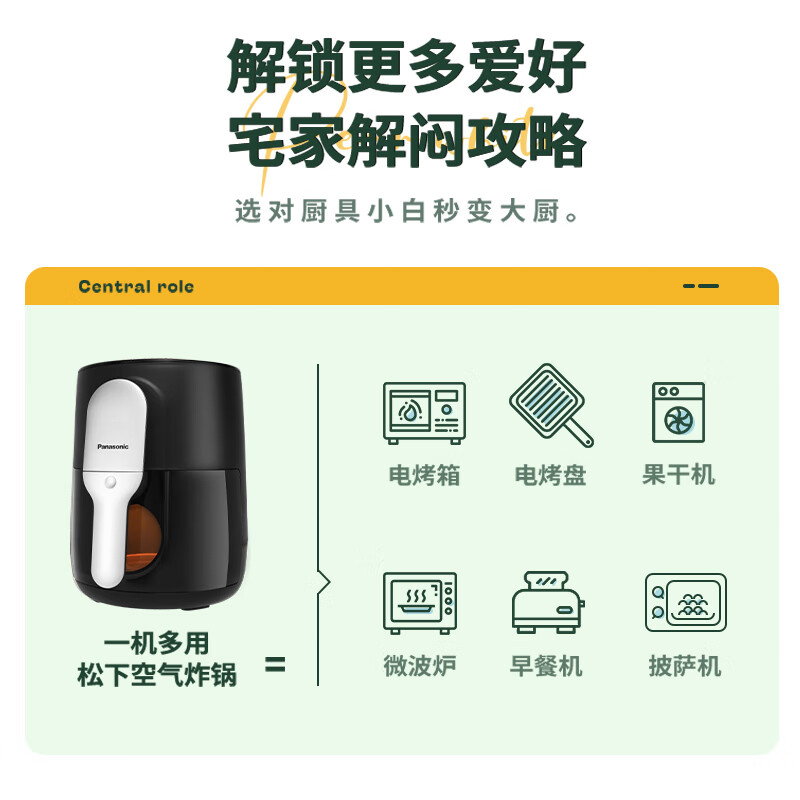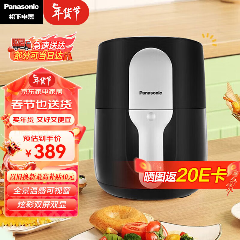 松下(Panasonic)多功能可视家用大容量双屏双显空气炸锅NF-HC150-K价格:359.00元!