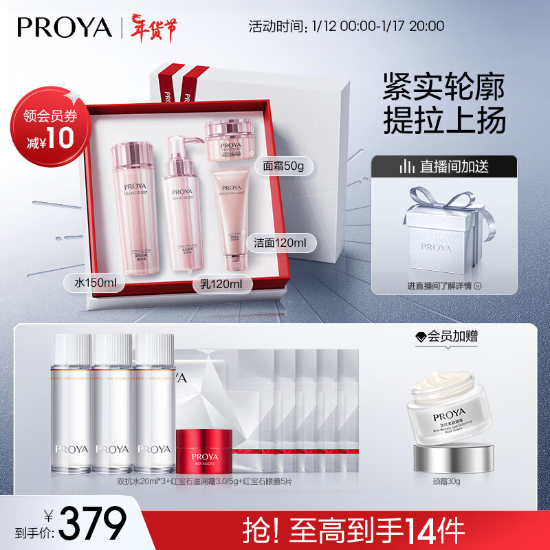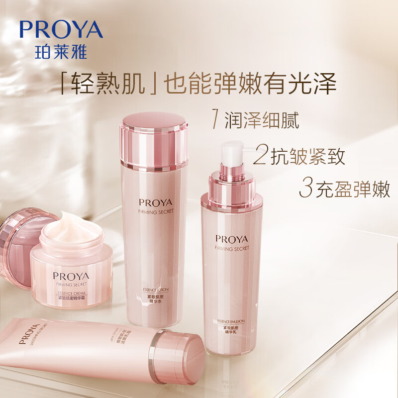 珀莱雅紧致肌密4件套(洁水乳面霜)补水护肤品套装 护肤礼盒 化妆品全套价格:389.00元!