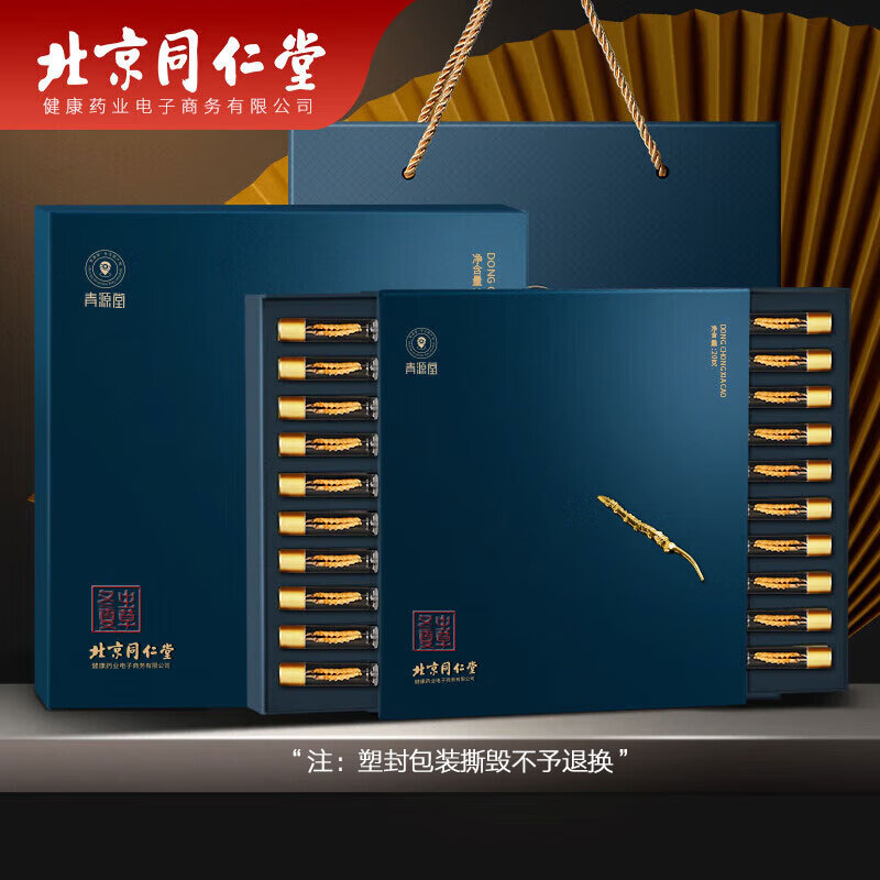 北京同仁堂 冬虫夏草【年货礼盒送长辈】 4条/g礼盒-双层20克 礼品 虫草无竹签无断草冻干干虫草礼盒价格:4940.00元!