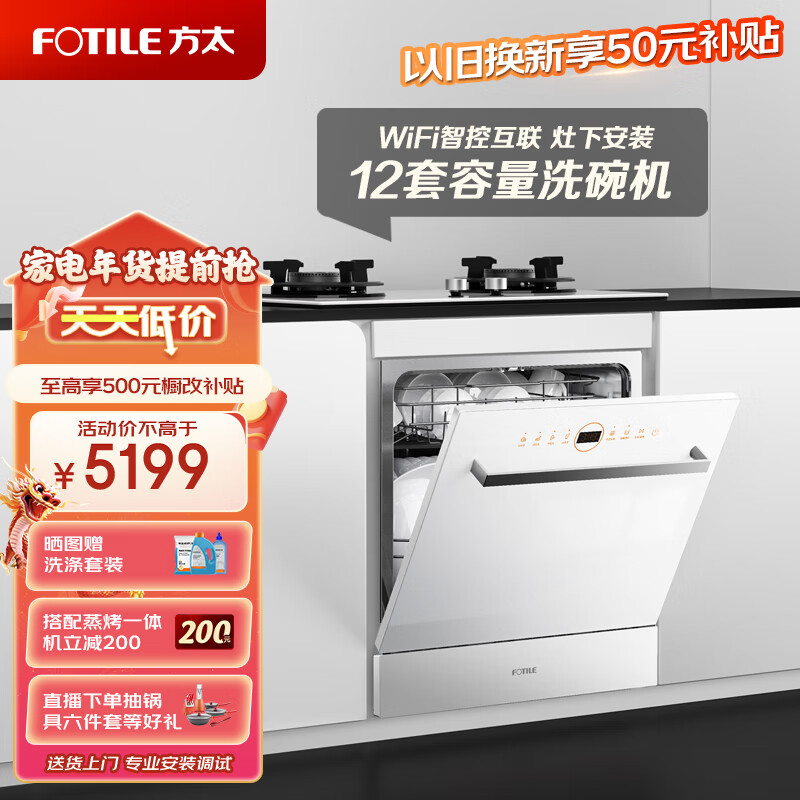 方太(FOTILE)洗碗机嵌入式家用 高能气泡洗 12套大容量 灶下洗碗机 WiFi智控 30min超快洗 典雅白NF1.i价格:5199.00元!