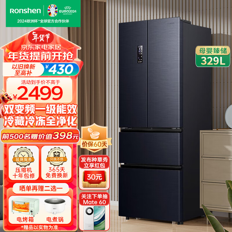 容声(Ronshen)冰箱法式四开门329升一级变频风冷无霜母婴电冰箱家用大容量可嵌入法式超薄多门冰箱BCD-329WD16MP价格:2799.00元!