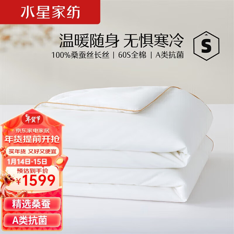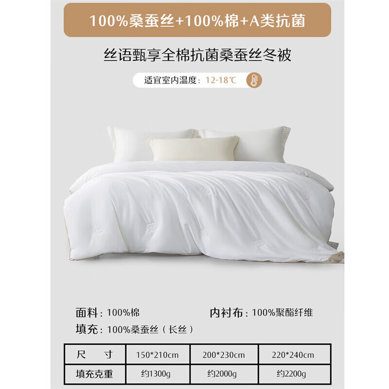 水星家纺A类100%桑蚕丝双人冬被子约6.6斤200*230cm白价格:3589.00元!