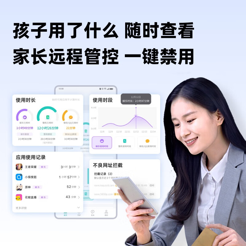 2、手机已收到,物流很快,已经用了两周多了,是一款能让家长放心满意的学生手机。说说心得:1、手机中有管控软件,家长在自己的手机上再安装一个家长端,就能时刻了解孩子端使用手机各个APP的情况,而且能限制孩子从应用商店下载APP,小孩想下载安装APP必须通过家长在家长端同意,家长也可以从家长端直接给孩子手机远程下载安装APP,从源头上就杜绝了小孩自己随意下载软件。2、能从家长端限制各个APP的使用时间段及时长,这个太棒了,防止小孩沉迷手机,而且能限制微信的小程序/看一看/视频号/直播/游戏等功能使用,堵住了现在聪明的孩子通过微信来使用各类玩乐小程序的漏洞。3、有从小1到-高3的同步教材及课程训练,还是免费的。4、有定位功能,随时了解孩子的位置。送钢化膜及保护壳,客服热情耐心,响应及时。