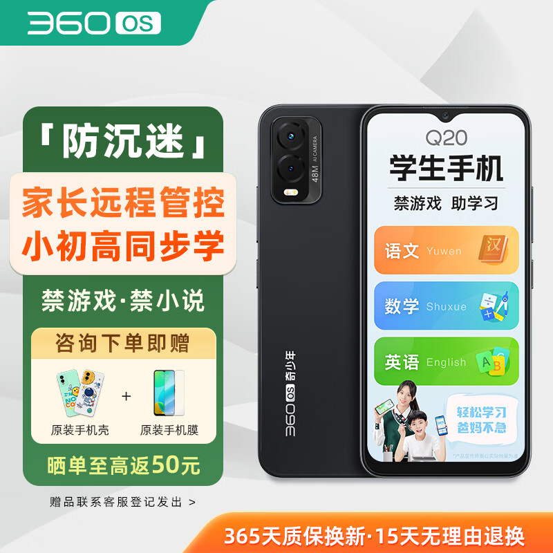 360 OS学生手机 初中儿童小学高中青少年 学习网课专用 防沉迷戒网瘾 奇少年Q20 子夜黑 8G+256G 管控版 价格:1748.00元!