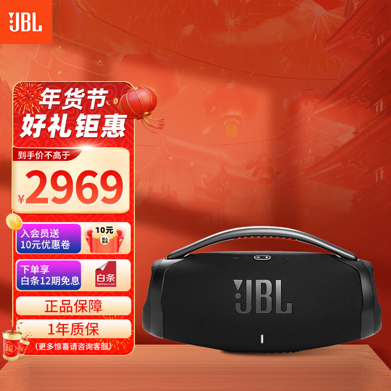 JBL BOOMBOX3 音乐战神三代3代 便携式蓝牙音箱 低音炮 户外音箱 IP67防尘防水 多台串联 长续航 黑色价格:2969.00元!