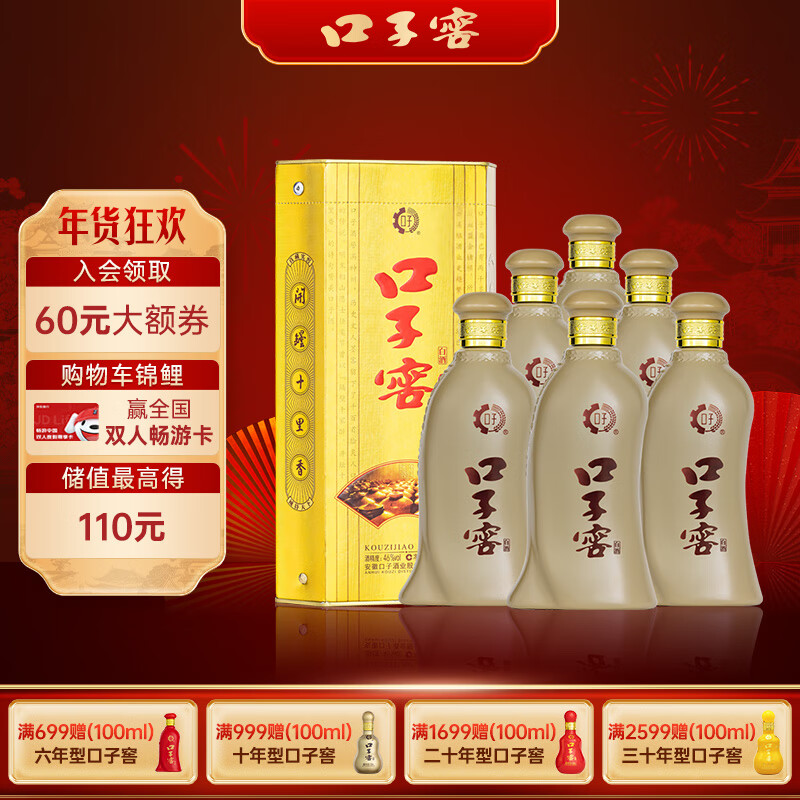 口子窖五年型兼香型白酒46度500ml*6瓶 整箱装 粮食酒 含礼袋 年货送礼价格:832.00元!