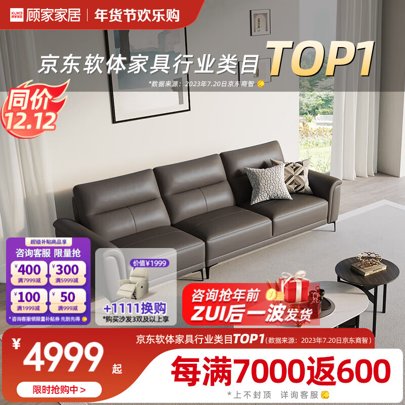 顾家家居 沙发真皮小户型头层牛皮沙发1105 深空灰三人位春节后发货价格:4999.00元!
