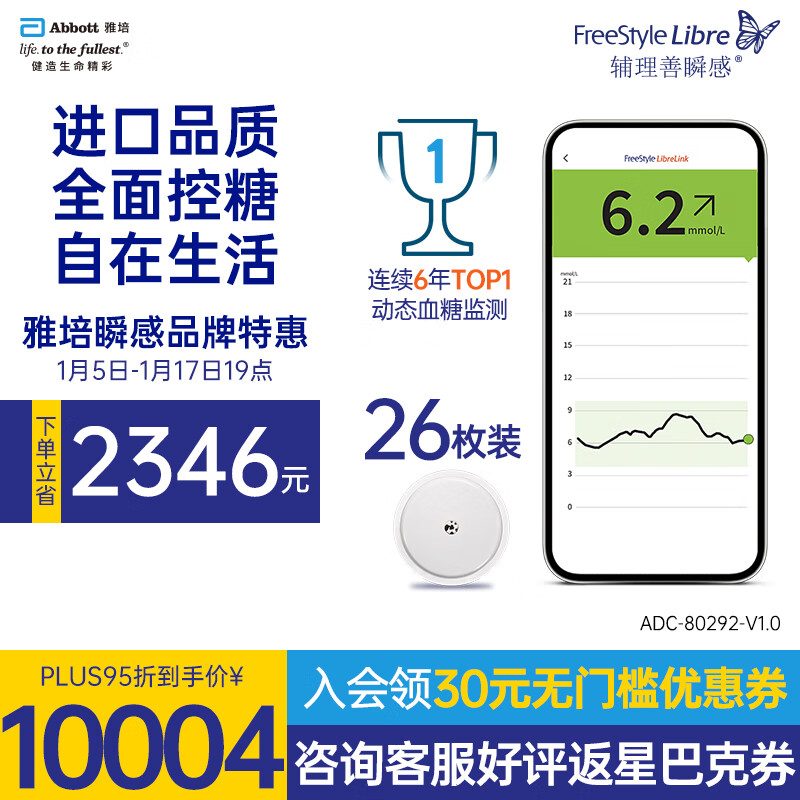 雅培瞬感传感器动态血糖仪器家用免扎针测血糖检测仪进口血糖仪探头*26枚价格:12350.00元!