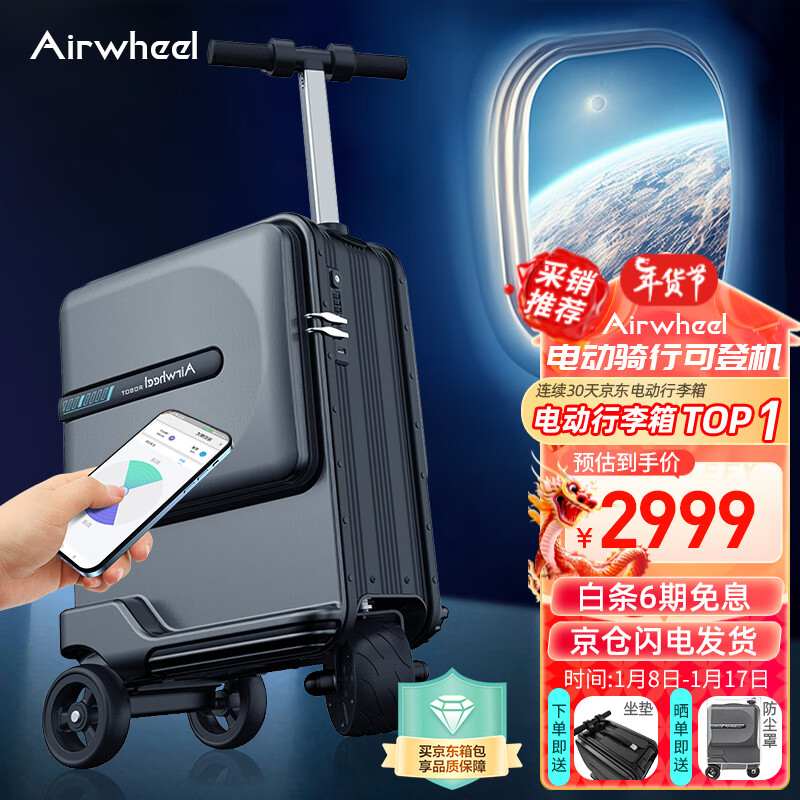 Airwheel电动行李箱可骑行拉杆箱智能代步登机箱可坐20英寸男女儿童箱价格:2999.00元!