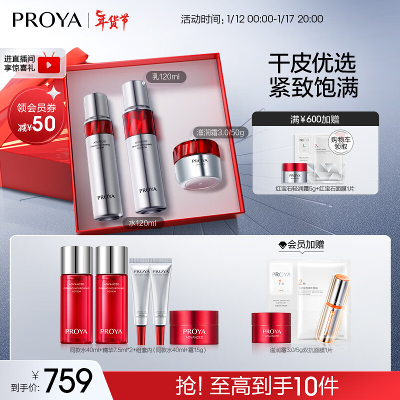 珀莱雅红宝石淡纹水乳护肤品套装 护肤礼盒 (水+乳+滋润霜) 化妆品全套价格:809.00元!
