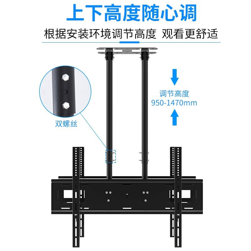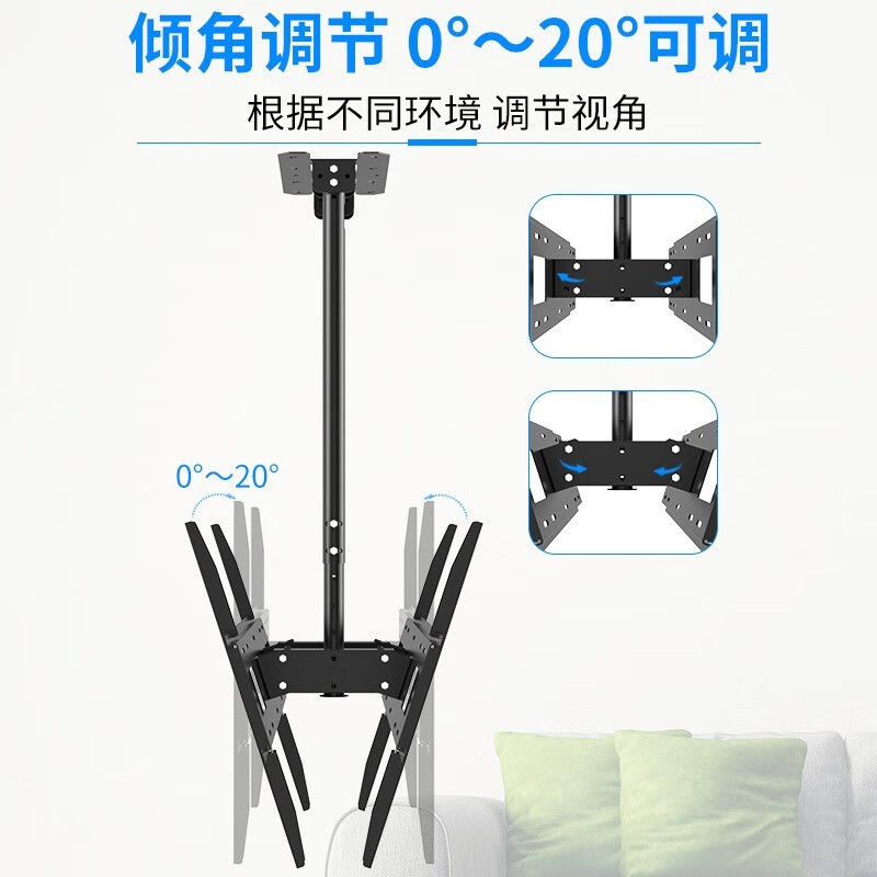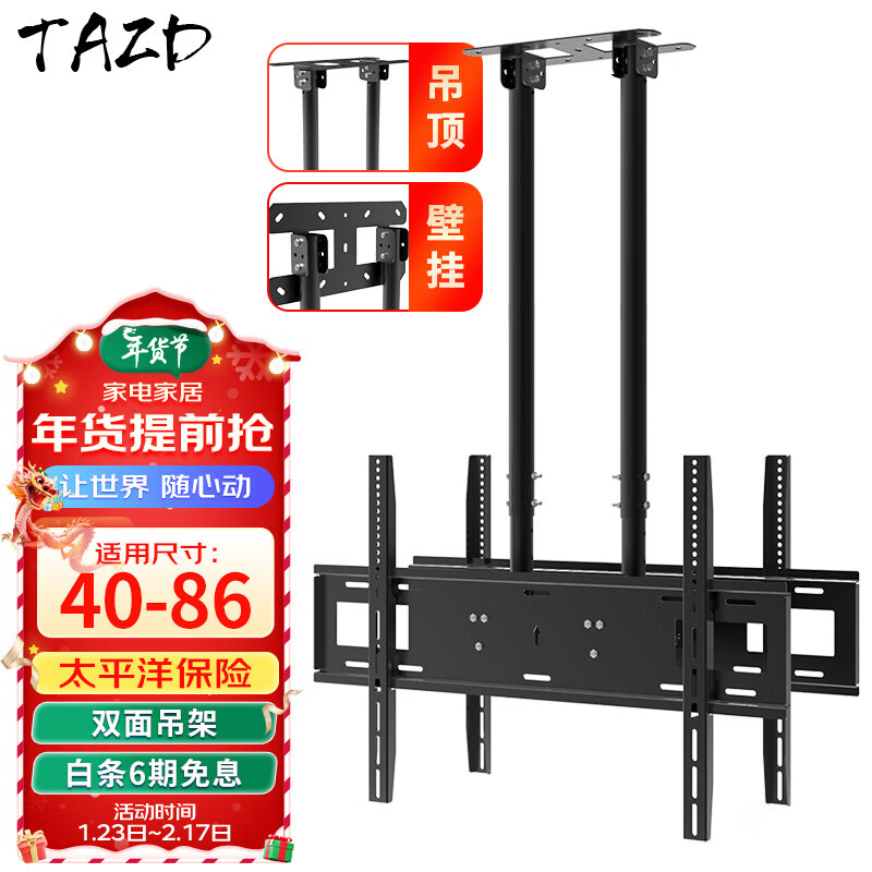 TAZD 电视吊架电视机壁挂旋转支架360度旋转吊架电视吊顶架天花板电视吊装挂架海信创维华为TCL 【40-86英寸】1.5米升级双杆承重前后双屏价格:619.00元!