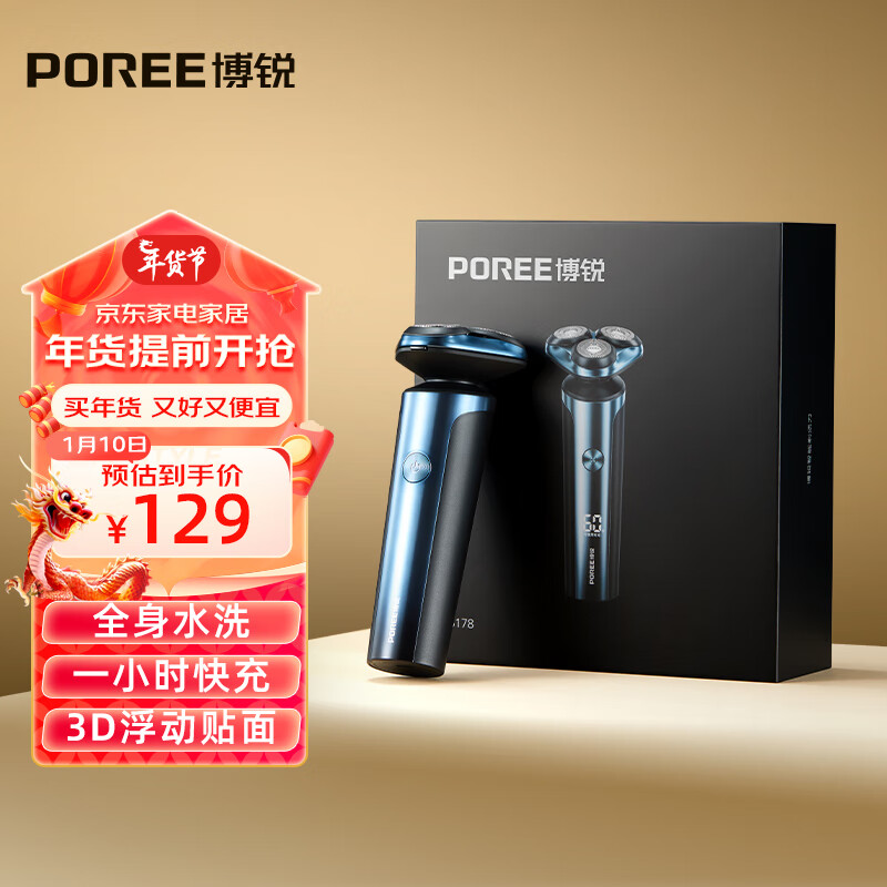 博锐剃须刀电动男士刮胡刀充电式胡须刀须刨车载便捷剃胡须刀全身水洗干湿双剃快充礼盒款PS178价格:129.00元!