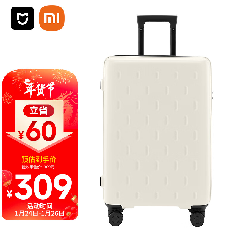 米家小米行李箱男大容量拉杆箱24英寸万向轮旅行箱托运女密码箱子白色价格:309.00元!